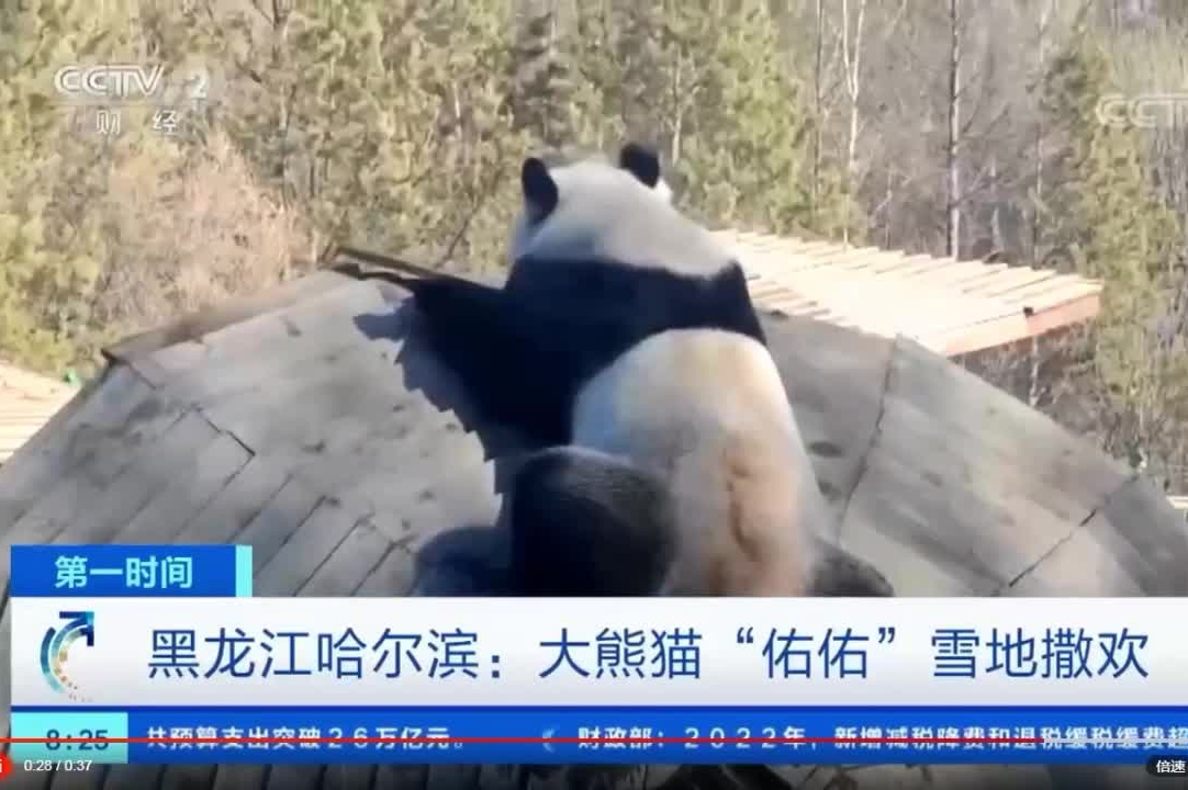 黑龍江哈爾濱:大熊貓“佑佑”雪地撒歡