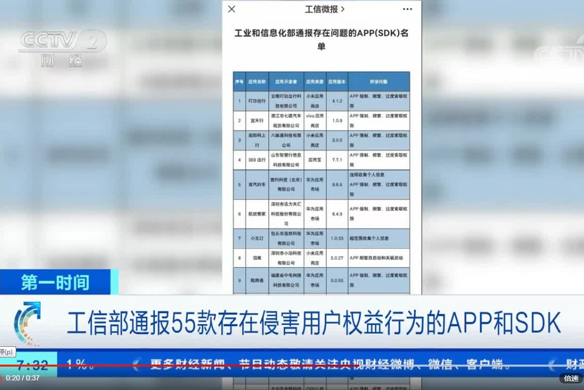 工信部通報(bào)55款存在侵害用戶權(quán)益行為的APP和SDK