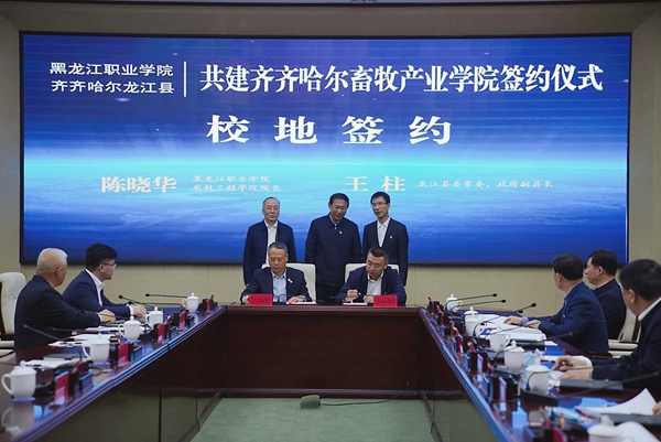 黑龍江經(jīng)濟(jì)網(wǎng)訊(李福山 王鴻儒 記者魏伯勤)為搭建校地校企合作平臺,聚焦產(chǎn)業(yè)人才短板,接軌應(yīng)用型院校人才培養(yǎng)體系,建立產(chǎn)業(yè)人才聯(lián)合培養(yǎng)機(jī)制,4月28日,黑龍江職業(yè)學(xué)院與龍江縣人民政府“共建齊齊哈爾畜牧產(chǎn)業(yè)學(xué)院”簽約儀式在齊齊哈爾市仙鶴賓館舉行。這次簽約是齊齊哈爾市“校企政”合作的一次有益探索,是產(chǎn)業(yè)人才培養(yǎng)、產(chǎn)教融合的新路徑、新載體,是推動齊齊哈爾全市畜牧業(yè)高質(zhì)量發(fā)展的一項(xiàng)重要舉措。