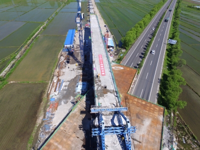 中鐵二十局佳鶴鐵路二分部經(jīng)理魏偉介紹,作為全線跨度最大的連續(xù)梁,該橋跨越鶴大高速公路,施工中需分節(jié)段澆筑混凝土,技術(shù)標準要求高、安全風險大。