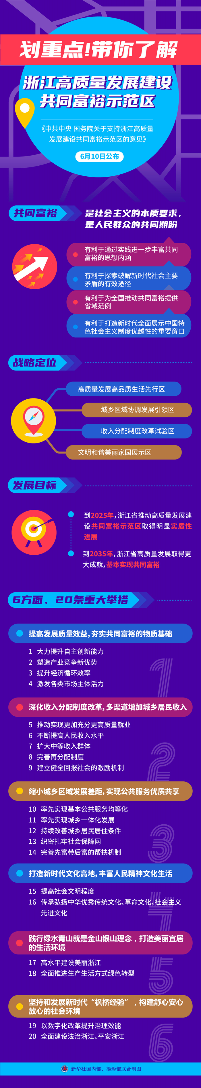 《中共中央 國(guó)務(wù)院關(guān)于支持浙江高質(zhì)量發(fā)展建設(shè)共同富裕示范區(qū)的意見(jiàn)》10日發(fā)布。共同富裕示范區(qū)有哪些亮點(diǎn)?提出了哪些重大任務(wù)?如何讓共同富??吹靡?jiàn)、摸得著、真實(shí)可感?打開(kāi)這張圖,帶你了解浙江高質(zhì)量發(fā)展建設(shè)共同富裕示范區(qū)。(新華社記者謝?,?安蓓 制圖 陳為)