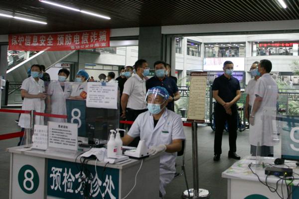 趙煒明一行先后到附屬第一醫(yī)院門診預(yù)檢分診處、呼吸科門診、耳鼻咽喉科門診、心血管病一科病房等處進(jìn)行實(shí)地檢查,并聽取附屬第一醫(yī)院黨委書記李建民關(guān)于院感防控工作的詳細(xì)匯報(bào)。