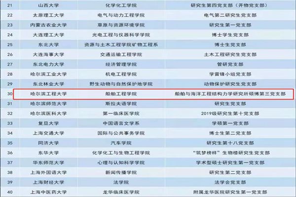 黑龍江經(jīng)濟(jì)網(wǎng)訊(全媒體見(jiàn)習(xí)記者 董廣碩 商祺)近日,教育部公布第二批全國(guó)高?!鞍賯€(gè)研究生樣板黨支部”和“百名研究生黨員標(biāo)兵”單位名單,哈爾濱工程大學(xué)船舶學(xué)院船舶與海洋工程結(jié)構(gòu)力學(xué)研究所碩博第三黨支部,以及智能學(xué)院博士研究生李明非榜上有名!