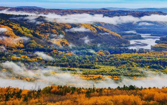 黑龍江經(jīng)濟(jì)網(wǎng)訊(記者魏?。┖邶埥那锾?,是大自然饋贈(zèng)的最華麗的狂歡,那濃得化不開(kāi)的五花山色,明艷動(dòng)人,一望無(wú)際,似列維坦筆下寫(xiě)實(shí)的秋彩:各類(lèi)喬木正由綠向金黃漸變,當(dāng)中夾雜著火紅的楓葉、蒼翠的松枝、銀白的瀑布……比起夏日滿眼的綠色,更多了一份五彩繽紛的浪漫,一條條通向天際線的公路,仿佛可以直達(dá)天界。