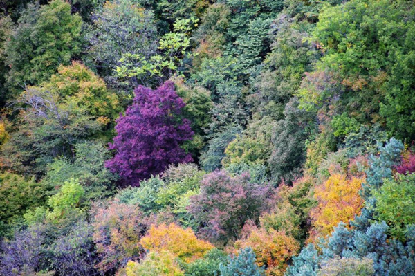 去桃山懸羊峰景區(qū)登高望遠(yuǎn),大山大河的遠(yuǎn)闊景象令人著迷。走在斑斕林間,秋日的陽(yáng)光穿過(guò)層疊錯(cuò)落的枝葉,留下一地斑駁。