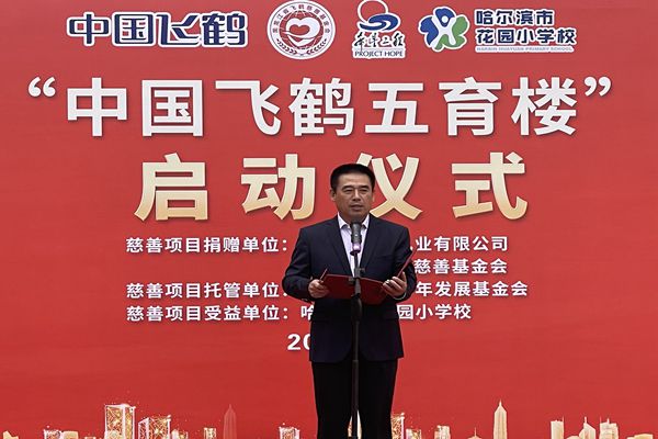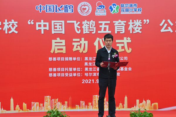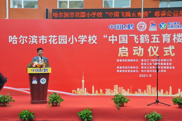飛鶴乳業(yè)黨委書記、飛鶴慈善基金會理事長朱天龍在啟動儀式上說,在中秋國慶即將到來之際,我們滿懷喜悅的心情,在百年名校哈爾濱市花園小學(xué)校舉行“中國飛鶴五育樓”公益慈善助教項目啟動儀式,這是飛鶴乳業(yè)履行社會責(zé)任、情系教育事業(yè)的又一項助教工程。在黑龍江省貫徹落實黨中央“雙減”政策,深入推進(jìn)五育并舉,促進(jìn)學(xué)生德智體美勞全面發(fā)展的重要時期。飛鶴向哈爾濱市花園小學(xué)捐贈625萬元,用于花園小學(xué)“五育樓”項目改造,這是一項利在當(dāng)代,功在千秋的公益慈善助教項目,旨在更好地優(yōu)化我省基礎(chǔ)教育教師學(xué)習(xí)培訓(xùn)環(huán)境,為花園小學(xué)教學(xué)提供更好的辦學(xué)條件,也是助力黑龍江省基礎(chǔ)教育的改革。省教育廳副廳長姜同河、團(tuán)省委副書記張濤對飛鶴乳業(yè)的慈善助教善舉給予充分的肯定和贊許?;▓@小學(xué)校長曹永鳴代表學(xué)校的孩子們向飛鶴乳業(yè)的慈善捐助表達(dá)深深的謝意!