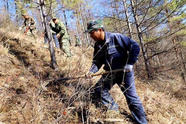 圖為阿木爾林業(yè)局黨員干部職工在綠林林場的適宜山坡種植黃芪。王力 攝