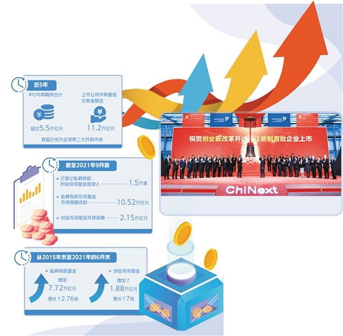 值得關注的是,私募股權和創(chuàng)投基金已成為直接融資的重要力量,在為投資者創(chuàng)造財富回報的同時,也對直接融資和實體經(jīng)濟具有重要的促進作用。數(shù)據(jù)顯示,截至2021年9月底,已登記私募股權、創(chuàng)業(yè)投資基金管理人1.5萬家,私募股權投資基金存續(xù)規(guī)模達到10.52萬億元,創(chuàng)業(yè)投資基金存續(xù)規(guī)模2.15萬億元。從2015年末至2021年的6月末,私募股權基金增加7.72萬億元,增長了2.76倍。創(chuàng)業(yè)投資基金增加了1.88萬億元,增長了7倍。