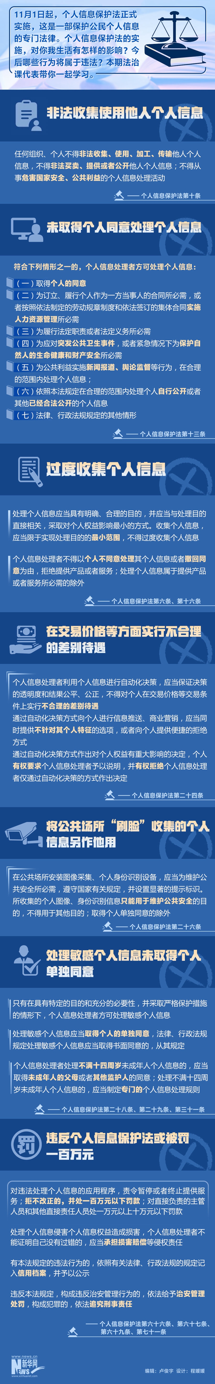 個人信息保護法11月1日實施 哪些行為將屬于違法?