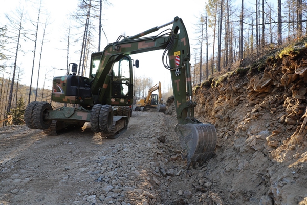 圖為阿木爾林業(yè)局多種經(jīng)營(yíng)公司干部職工利用鉤機(jī)機(jī)械設(shè)備開(kāi)挖2—1線(xiàn)新開(kāi)通線(xiàn)路邊溝(王力/攝)