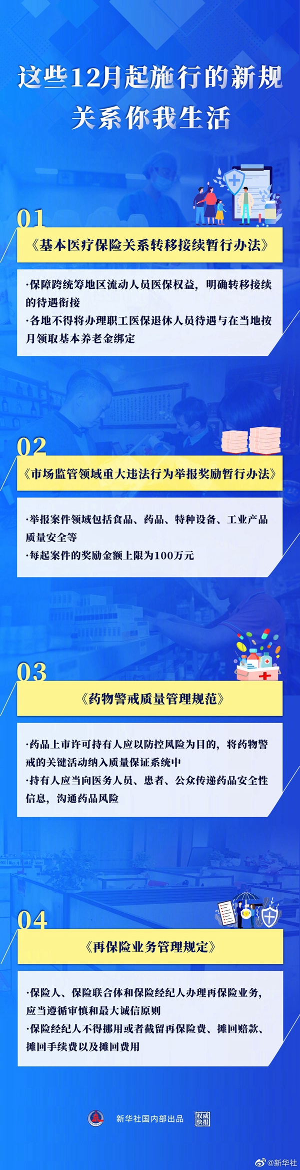 明確醫(yī)保關(guān)系的轉(zhuǎn)移接續(xù)辦法,讓跨統(tǒng)籌地區(qū)流動人員的醫(yī)保權(quán)益更有保障;舉報市場監(jiān)管領(lǐng)域重大違法行為可獲獎勵,每起案件的獎勵金額上限為100萬元;進(jìn)一步完善藥物警戒質(zhì)量管理規(guī)范,強(qiáng)化藥品上市許可持有人的安全監(jiān)管責(zé)任……戳大圖,哪條你最期待?(新華社記者白陽 海報設(shè)計張晨光)
