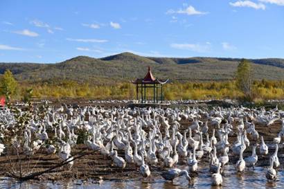 新林林業(yè)局依托當(dāng)?shù)厮葚S美的生態(tài)環(huán)境優(yōu)勢,扶持開展“生態(tài)鵝”養(yǎng)殖項目,為職工開拓了增收致富的新途徑(崔紅霞 攝)
