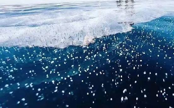 “冰泡”是由湖底植物釋放出的沼氣(甲烷)在上升過(guò)程中,因極寒氣溫導(dǎo)致冰封速度過(guò)快,被“鎖”在冰層之中而形成。目前,全世界僅有3個(gè)著名的冰泡湖,北極漠河冰泡湖是中國(guó)最北唯一的“冰泡奇觀”。觀音山“冰泡”晶瑩剔透、造型奇特、惟妙惟肖,有的形似“飛碟”一飛沖天,有的形似“珊瑚”美輪美奐,有的形似“觀音”端坐蓮臺(tái)。形態(tài)各異的“冰泡”形成一幅幅精美的冰雪藝術(shù)畫(huà)卷,成為漠河冬季最火爆的網(wǎng)紅打卡地。