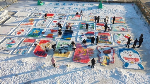 雪后的籃球場,變身為學(xué)生們的巨型畫板,大家在這里以“迎接建黨100周年”、“迎接北京2022冬奧會(huì)”為主題,在雪地上涂鴉,把雪后的校園裝扮得與眾不同。學(xué)生們發(fā)揮想象,用色彩描繪出更快、更高、更強(qiáng)的奧林匹克精神,以涂鴉展現(xiàn)著當(dāng)代中學(xué)生的青春風(fēng)采。