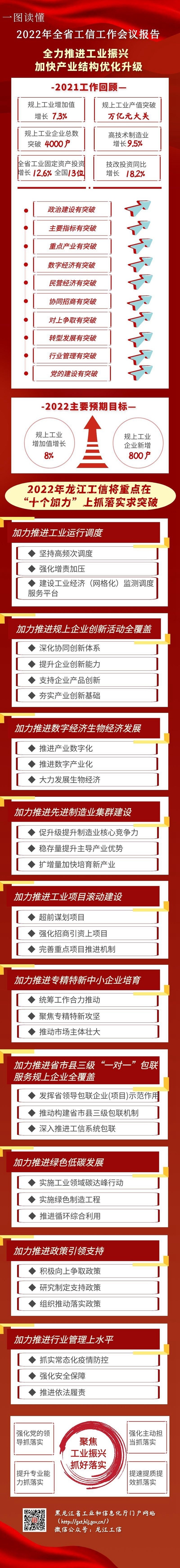 會議強調(diào),新的一年,要堅持以習近平新時代中國特色社會主義思想為指導,全面貫徹落實黨的十九大和十九屆歷次全會精神,深入貫徹落實習近平總書記重要講話重要指示批示精神,按照黨中央“提升制造業(yè)核心競爭力”和省委“要把振興工業(yè)擺上突出位置”的部署要求,完整、準確、全面貫徹新發(fā)展理念,服務和融入構(gòu)建新發(fā)展格局,推動高質(zhì)量發(fā)展,堅持思想思路破題、科學規(guī)劃引領、配套政策跟進、聚焦優(yōu)勢揚長、激發(fā)活力補短,“穩(wěn)”字當頭、“進”字發(fā)力,全力實施工業(yè)振興計劃,以發(fā)展壯大數(shù)字經(jīng)濟、生物經(jīng)濟等戰(zhàn)略性新興產(chǎn)業(yè)為引領,“十個加力”穩(wěn)存量擴增量,鞏固實體經(jīng)濟根基,做強先進制造業(yè),做優(yōu)現(xiàn)代產(chǎn)業(yè)體系,推動工業(yè)經(jīng)濟實現(xiàn)質(zhì)的穩(wěn)步提升和量的合理增長,加快龍江工業(yè)再創(chuàng)新輝煌,以優(yōu)異成績迎接黨的二十大勝利召開。