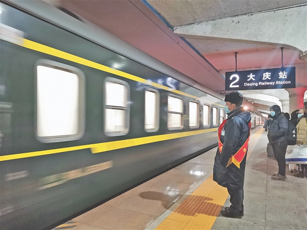 由于節(jié)后返程客流劇增,大慶地區(qū)去往海拉爾的4趟旅客列車無法滿足企業(yè)返崗需要,為幫助企業(yè)解決油田職工返崗復(fù)工困難,哈爾濱局集團(tuán)公司全力協(xié)助大慶油田有限責(zé)任公司辦理職工出行事宜,為企業(yè)量身定制了油田職工返崗復(fù)工專列開行方案。在春運(yùn)期間運(yùn)力緊張的情況下,專門調(diào)集10輛空調(diào)車體,全面進(jìn)行設(shè)備檢修維護(hù)和車輛消毒作業(yè),滿足石油工人出行需求。負(fù)責(zé)運(yùn)輸組織工作的大慶站為油田職工提供專項(xiàng)聯(lián)絡(luò)、專區(qū)候車、專人引導(dǎo)服務(wù),及時(shí)辦理團(tuán)體購票,增開進(jìn)站通道,提前做好候車區(qū)域通風(fēng)、消毒和保潔工作,配合地方政府嚴(yán)格落實(shí)進(jìn)站掃碼、測(cè)溫等防疫措施,在驗(yàn)票進(jìn)站、安檢、候車、乘車等環(huán)節(jié)設(shè)置人員進(jìn)行引導(dǎo)。并利用小喇叭、電子顯示屏、車站廣播等載體,循環(huán)播放疫情防控措施、登乘列車注意事項(xiàng),引導(dǎo)務(wù)工人員分散候車就座。鐵路部門精心抽調(diào)服務(wù)經(jīng)驗(yàn)豐富的哈爾濱客運(yùn)段北京車隊(duì)列車工作人員負(fù)責(zé)乘務(wù)工作,提前做好列車通風(fēng)消毒和防疫保潔工作,為乘客準(zhǔn)備了一次性醫(yī)用口罩和消毒洗手液,全力營造健康安全的出行環(huán)境。