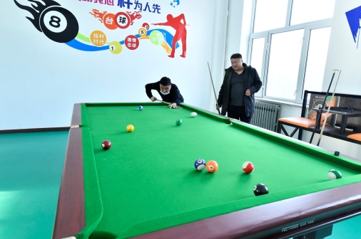 干部職工在林業(yè)局職工之家活動(dòng)室一決高下(郭曉冰 攝)