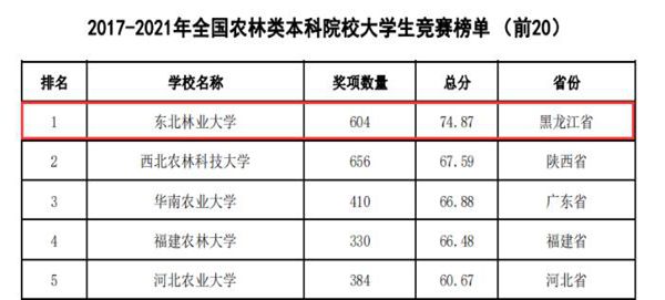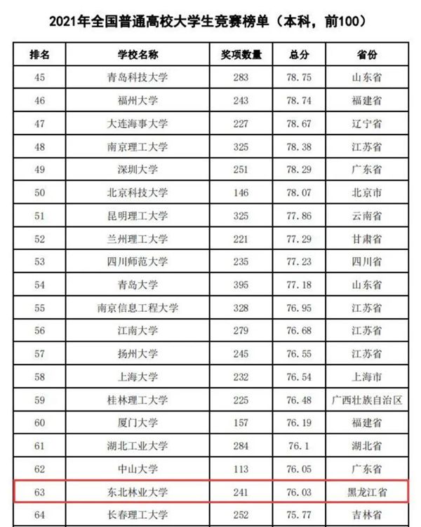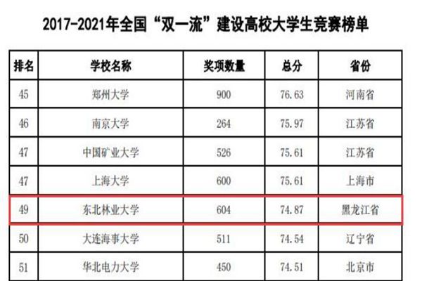 東北林業(yè)大學(xué)連續(xù)四年蟬聯(lián)全國農(nóng)林類本科院校大學(xué)生競賽排行榜榜首
