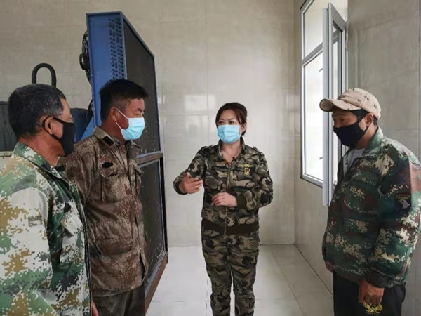 劉海玲(右二)指導(dǎo)企業(yè)員工學(xué)習(xí)飼養(yǎng)技術(shù)(圖片由受訪者提供)