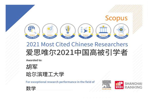 黑龍江經(jīng)濟(jì)網(wǎng)訊(黑龍集日報全媒體見習(xí)記者董廣碩 商祺)近日,全球信息分析公司愛思唯爾(Elsevier)正式發(fā)布了2021“中國高被引學(xué)者”(Highly Cited Chinese Researchers)榜單。哈爾濱理工大學(xué)自動化學(xué)院院長、博士生導(dǎo)師胡軍教授在數(shù)學(xué)學(xué)科領(lǐng)域連續(xù)兩年入選高被引學(xué)者。本次全國共有140位學(xué)者入選本次數(shù)學(xué)學(xué)科領(lǐng)域榜單,黑龍江入選4位。胡軍教授蟬聯(lián)榜單展現(xiàn)了他在數(shù)學(xué)及相關(guān)交叉學(xué)科領(lǐng)域的重要貢獻(xiàn)和廣泛學(xué)術(shù)影響力。