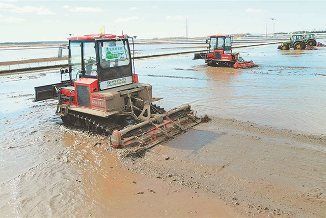 無人農(nóng)機在水田整地作業(yè)。 馬文竹 王帥攝