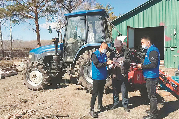 佳木斯聯(lián)通工作人員在七星農(nóng)場了解農(nóng)民通信需求。由受訪者提供