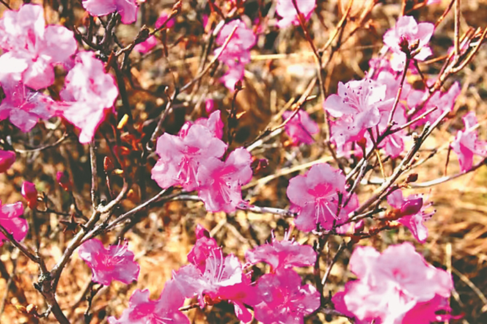 興安杜鵑有很多動(dòng)聽的名字,達(dá)子香、滿山紅、映山紅等,朝鮮族叫它“金達(dá)萊”,野生興安杜鵑被列為國家重點(diǎn)保護(hù)二級(jí)野生植物。一簇簇,一片片,艷如桃李、燦若云霞、熱情似火、暗香四溢,游覽采風(fēng)的人們紛至沓來。