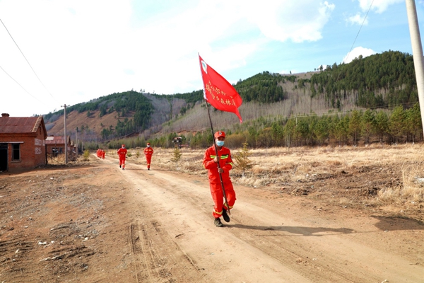 阿木爾林業(yè)局綠林林場專業(yè)撲火隊伍進行輕裝快速行軍兩公里比賽(王力 攝)
