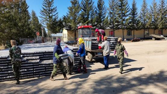 在各項條件具備后,苗圃搶抓時間進行輕基質杯生產工作和起苗作業(yè),職工們發(fā)揚實干精神,積極投入到生產工作中來,每天生產輕基質近1萬杯,并已完成新播落葉松起苗工作。