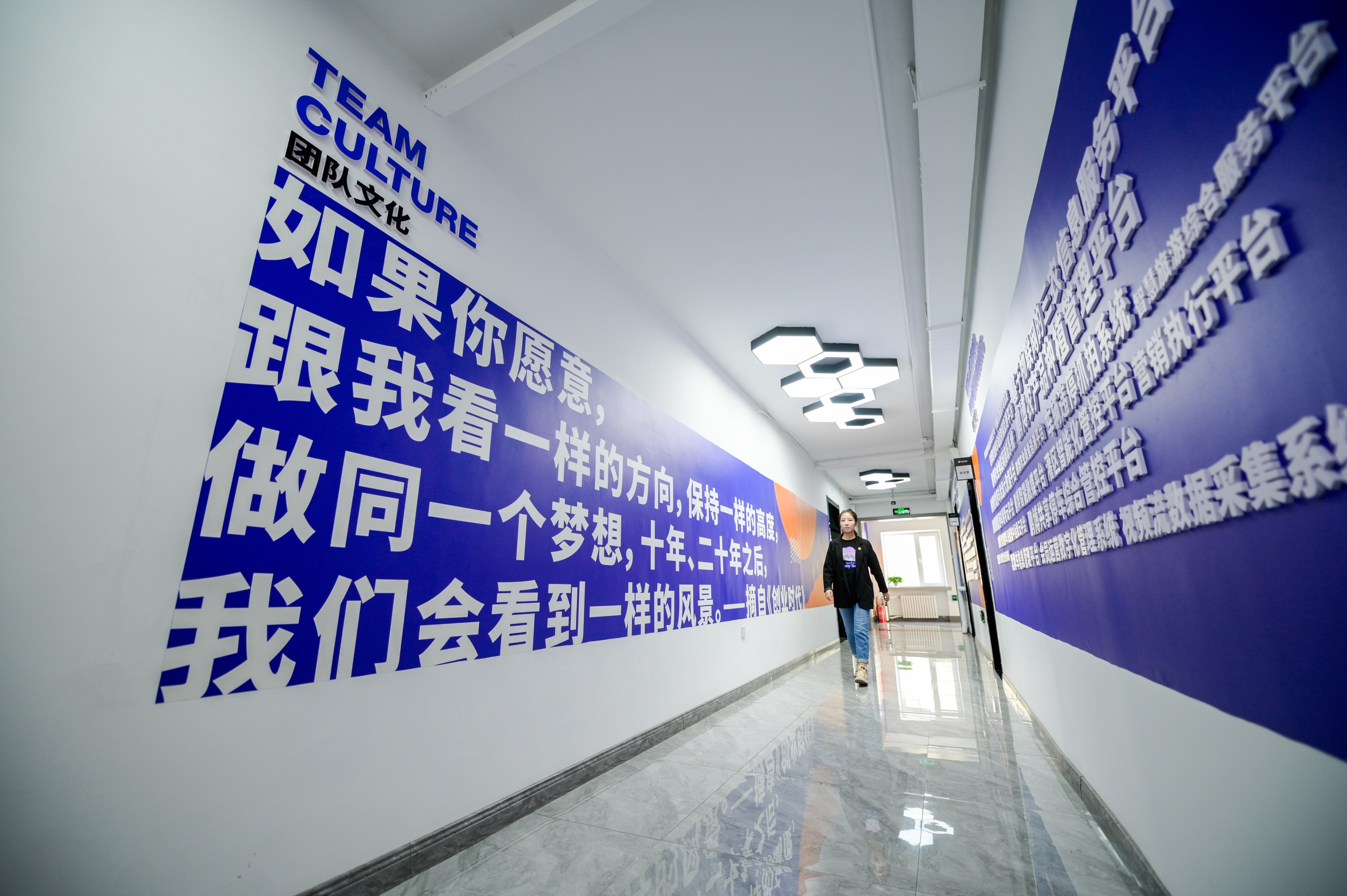 “如果你愿意,跟我看一樣的方向,保持一樣的高度,做同一個夢想,十年、二十年之后,我們會看到一樣的風景?!薄白尮ぷ骱蜕罡悄堋薄哌M鵬博集團,隨處可見勵志標語,年輕的員工們正滿懷熱情地在電腦前敲擊著鍵盤。