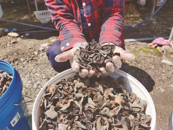 進(jìn)入6月,黑木耳迎來收獲期。黑龍宮林場的100棟黑木耳大棚內(nèi),鮮嫩光亮的黑色菌朵自由伸展,開出層層疊疊的“致富花”。