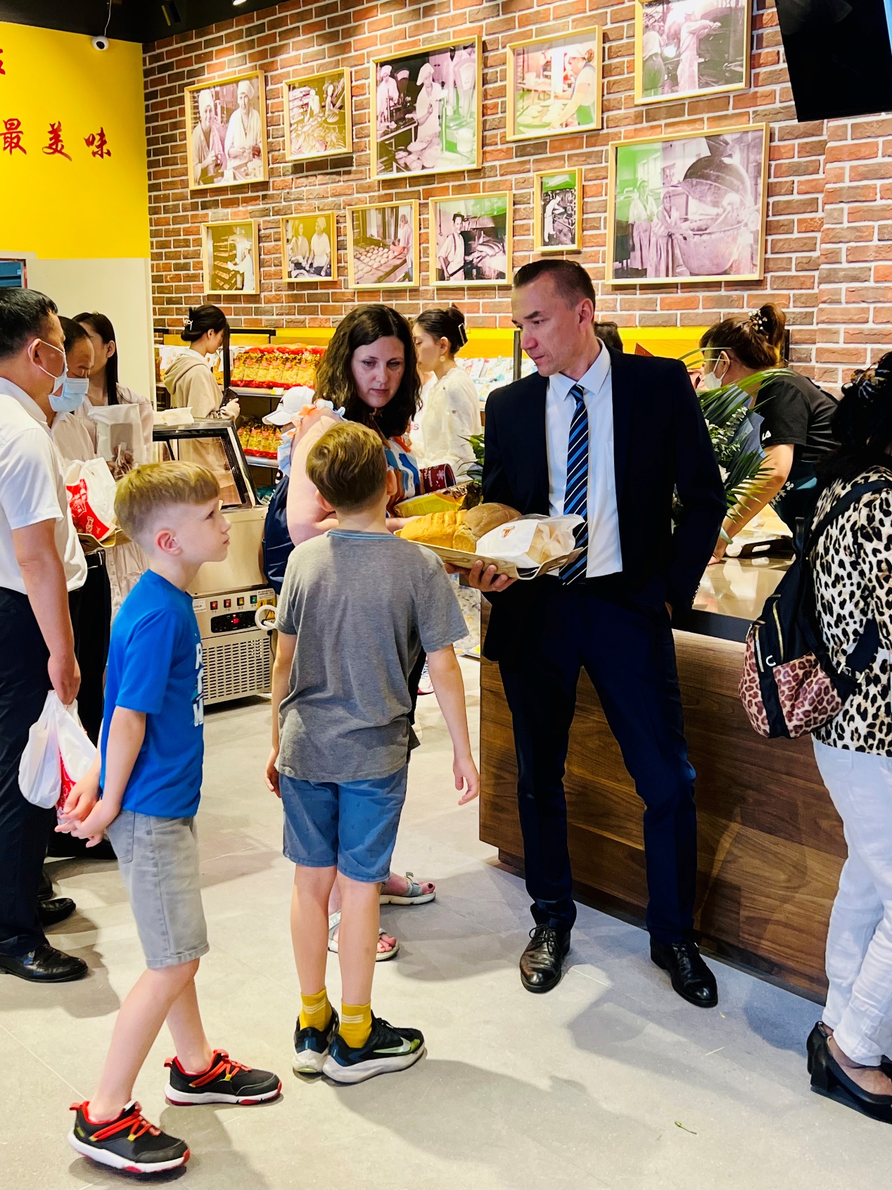 俄羅斯聯(lián)邦駐哈爾濱總領(lǐng)館三等秘書那雷興與顧客交談
