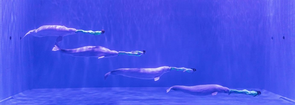 2009年,哈爾濱極地公園首推極地白鯨水下表演,歷時(shí)13年的時(shí)間,“來(lái)哈爾濱·看白鯨表演”已經(jīng)成為全國(guó)游客心馳神往的旅游節(jié)目,而表演中經(jīng)典的“海洋之心”不僅獲得了原創(chuàng)版權(quán),也成為了哈爾濱一張具有浪漫色彩的文旅名片,獲得國(guó)內(nèi)、國(guó)際主流媒體持續(xù)十余年的關(guān)注。2021年5月,三只可愛(ài)的極地白鯨創(chuàng)造的“三鯨開泰”首次亮相;現(xiàn)在,哈爾濱極地公園的白鯨家族推出“四鯨巡游”、“四鯨祈?!钡雀唠y度表演,再一次創(chuàng)造了經(jīng)典。