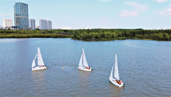 連日來,哈爾濱市職工帆船帆板運(yùn)動(dòng)協(xié)會(huì)的40余名隊(duì)員,在一湖三島濕地的訓(xùn)練基地中進(jìn)行新帆船的駕乘訓(xùn)練,為相關(guān)帆船比賽做準(zhǔn)備。黑龍江日報(bào)記者 張澍攝