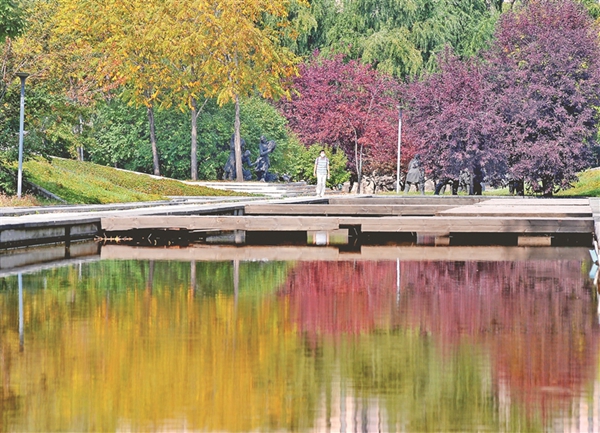 13日,哈爾濱市道里區(qū)景江東路附近的綠化帶里,一些樹(shù)葉開(kāi)始變色,紅的、黃的、綠的,構(gòu)成了一幅美麗的圖畫(huà),成為街頭一道風(fēng)景,吸引人們駐足觀看、拍照。哈爾濱市秋色漸顯,為整座城市增添了更多的魅力。
