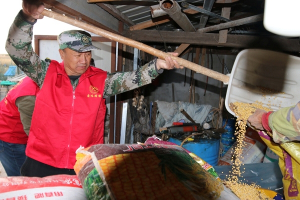 接著大家又來到明桂琴和程少和老人家中。在明桂琴老人家中,黨員同志們一走進(jìn)院子,正趕上老人家中的糧食沒有碼放好灑了一地,大家立刻七手八腳的把糧食收好裝入袋中。在隨后的座談慰問中,老人回想起這些年工作隊(duì)的同志們對自己的熱心幫扶,感動得熱淚盈眶。