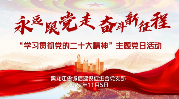 黑龍江經(jīng)濟(jì)網(wǎng)訊(劉懷宇 記者崔冰)為認(rèn)真學(xué)習(xí)宣傳貫徹黨的二十大精神,落實(shí)《中共黑龍江省委關(guān)于認(rèn)真學(xué)習(xí)宣傳貫徹黨的二十大精神 奮力譜寫(xiě)全面建設(shè)社會(huì)主義現(xiàn)代化國(guó)家龍江新篇章的決定》,迅速掀起學(xué)習(xí)貫徹黨的二十大精神的熱潮,黑龍江省誠(chéng)信建設(shè)促進(jìn)會(huì)黨支部于11月5日下午,在線(xiàn)上開(kāi)展以“學(xué)習(xí)貫徹黨的二十大精神”為主題的黨日活動(dòng)。
