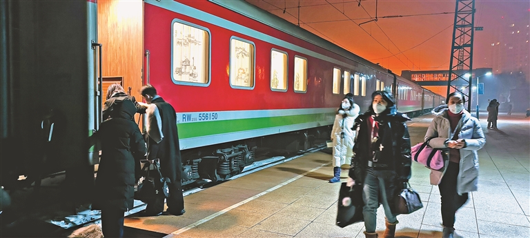 隨著哈爾濱國際冰雪節(jié)開幕,冰雪大世界、中國雪鄉(xiāng)、“北極”漠河、亞布力滑雪風(fēng)景區(qū)等景點成為今冬最熱門的冰雪旅游目的地。中國鐵路哈爾濱局集團(tuán)有限公司積極服務(wù)冰雪旅游發(fā)展,推出冰雪環(huán)線旅游專列。冰雪環(huán)線旅游專列以原生態(tài)極北冰雪之旅為主題,班期7天6晚,行程覆蓋哈爾濱、漠河、海拉爾、扎蘭屯等冰雪旅游熱門地區(qū),包含林海雪原、東北人家、游獵部落、牧民之家等多樣特色場景,暢享踏跡尋鹿、駱駝爬犁、萬馬奔騰、篝火煙花、民俗活動等繽紛體驗,在“中國冷極”根河與深山密林中的馴鹿親密接觸,感受狩獵部落的悠久文化,在“神州北極”漠河參觀亞洲唯一的圣誕主題村落,體驗“潑水成冰”的絕美瞬間。 王磊攝
