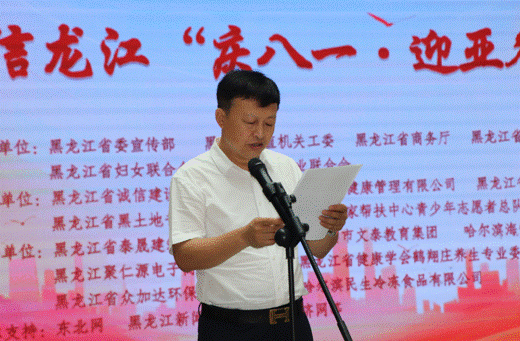 省直機(jī)關(guān)工委行業(yè)協(xié)會商會黨建工作部部長、全省性社會組織黨委專職副書記秦曉明致辭。他表示,相信通過這次活動的舉辦,將進(jìn)一步激勵軍民同心,增強(qiáng)情感認(rèn)同,深化同呼吸、共命運、心連心的軍民魚水情,營造擁軍優(yōu)屬、擁政愛民的濃厚社會氛圍。同時,以亞冬會為媒,以書畫展為平臺,充分展示文明尚禮、熱情自信的冰城風(fēng)貌,領(lǐng)略龍江深厚的冰雪運動底蘊(yùn)。