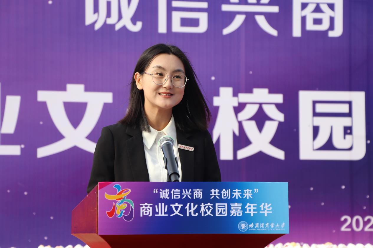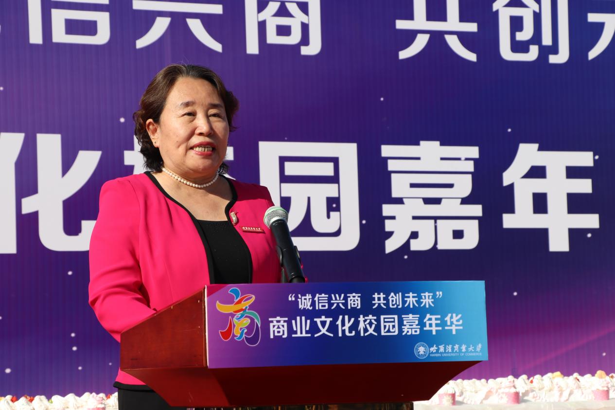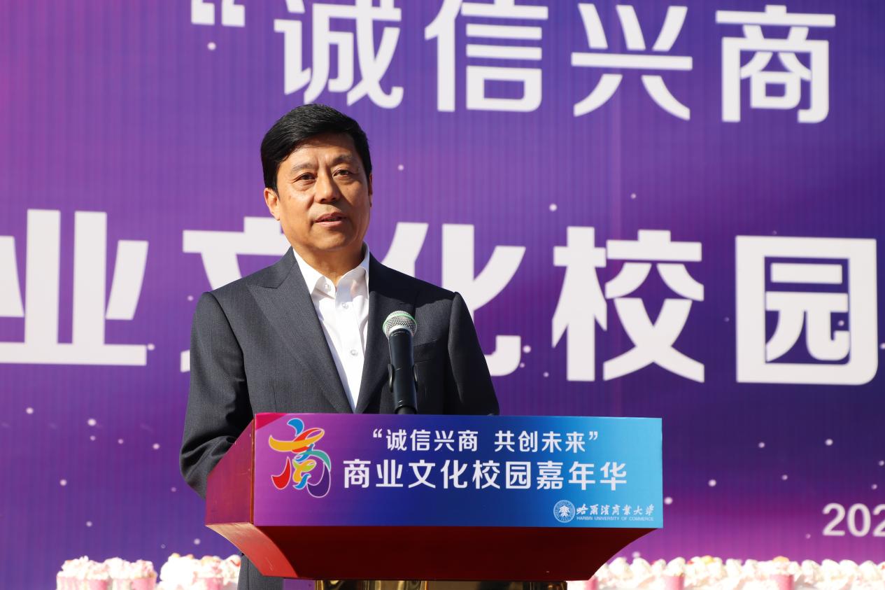 哈爾濱商業(yè)大學(xué)黨委書記孫先民致辭。他表示,誠信“軟實(shí)力”為高質(zhì)量發(fā)展提供“硬支撐”。本屆“誠信興商·共創(chuàng)未來”商業(yè)文化校園嘉年華活動堅(jiān)持以文化力量啟智潤心、固本培元,是深入學(xué)習(xí)貫徹習(xí)近平總書記在主持召開新時代推動?xùn)|北全面振興座談會和視察我省時的重要講話重要指示精神,全面落實(shí)立德樹人根本任務(wù)的務(wù)實(shí)舉措。哈爾濱商業(yè)大學(xué)作為新中國第一所多科性商業(yè)大學(xué),始終堅(jiān)持“大商鑄才、大雅育人、商雅兼?zhèn)洹⒔?jīng)世濟(jì)民”的育人理念,厚植師生“心懷祖國,至誠奉獻(xiàn),以商弘業(yè),矢志一流”的大商之道。活動將充分發(fā)揮老字號在文化引領(lǐng)、品牌建設(shè)、產(chǎn)業(yè)升級等方面的示范引領(lǐng)作用,彰顯龍江市場主體活力與創(chuàng)新力,聚焦建設(shè)“六個龍江”、推進(jìn)“八個振興”,筑牢堅(jiān)定龍江文化繁榮發(fā)展的自信根基,進(jìn)一步凝聚師生扎根龍江、服務(wù)龍江、建設(shè)龍江的情懷和力量。