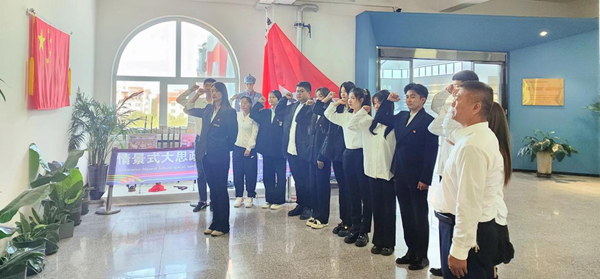 在課程結(jié)束之際,少先隊(duì)員發(fā)出了“勿忘國(guó)恥 吾輩自強(qiáng)”的錚錚誓言;黑龍江外國(guó)語(yǔ)學(xué)院藝術(shù)系輔導(dǎo)員張博雅帶領(lǐng)在場(chǎng)全體黨員重溫了入黨誓詞。短短的十二句話,道出了中國(guó)共產(chǎn)黨的百年奮斗歷程,凝聚著每一名黨員不忘初心、堅(jiān)守理想的信念與力量。面對(duì)黨旗,全體黨員莊嚴(yán)地舉起右拳宣誓,表達(dá)了矢志不渝跟黨走的決心和勇?lián)姑?、不?fù)黨恩的堅(jiān)定信念。