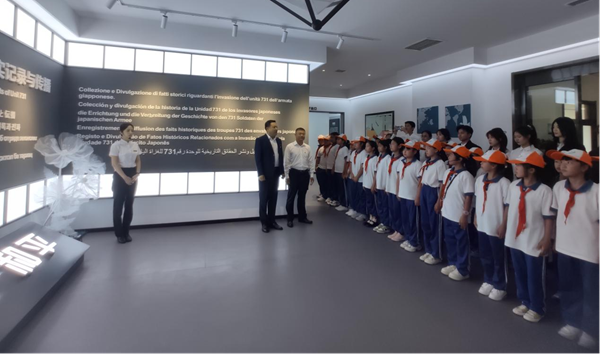 為了緬懷抗戰(zhàn)先烈的光輝業(yè)績(jī),弘揚(yáng)愛(ài)國(guó)主義精神和民族精神,激發(fā)學(xué)生奮發(fā)成才、報(bào)效祖國(guó)的熱情,黑龍江外國(guó)語(yǔ)學(xué)院與對(duì)青鎮(zhèn)中心小學(xué)校聯(lián)合舉辦了勿忘國(guó)恥 吾輩自強(qiáng)——紀(jì)念“九一八”主題“大思政課”。黑龍江外國(guó)語(yǔ)學(xué)院藝術(shù)系2021級(jí)學(xué)生黨員代表、對(duì)青鎮(zhèn)中心小學(xué)38名少先隊(duì)員和黨員教師50余人,在國(guó)家級(jí)“大思政課”實(shí)踐教學(xué)基地——黑龍江外國(guó)語(yǔ)學(xué)院國(guó)際和平資料館共同上了一堂“大思政課”。黑龍江外國(guó)語(yǔ)學(xué)院紀(jì)委書(shū)記、副校長(zhǎng)、國(guó)際和平資料館館長(zhǎng)焦洪雙博士擔(dān)任課程主講。
