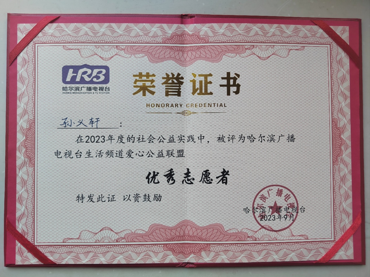 上學(xué)后的孫義軒同學(xué)更是把助人為樂當(dāng)作自己日常的志愿行動(dòng)。他一邊認(rèn)真學(xué)習(xí)文化課程,一邊通過積極參加志愿活動(dòng)提升自己。