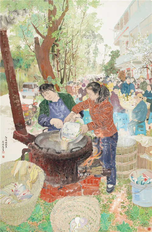唐德福 三峽人家——社壇壩壩席 220cm×144cm 國畫