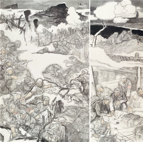 鄭天倫 渡江戰(zhàn)役第一槍 245cm×240cm 國畫