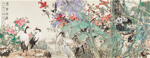 于文江、賈廣健、姚大伍、陳鵬、李乃宙、郭子良 美好家園 145cm×365cm 國畫