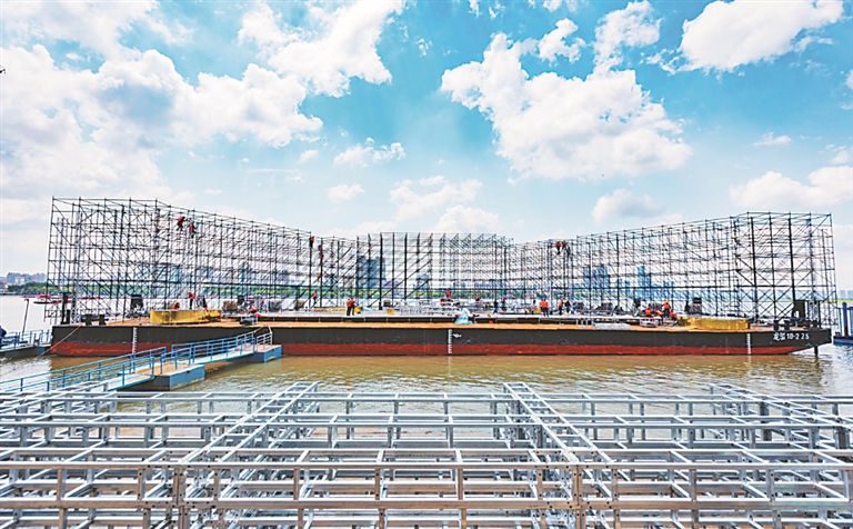 建設(shè)中的江上大舞臺。圖片由哈爾濱冰雪大世界股份有限公司提供