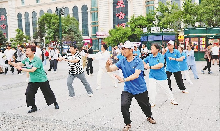 在哈爾濱建筑藝術(shù)廣場(chǎng)上,可以看到來(lái)自各地的游人正在打卡拍照,來(lái)自青島的老年旅游團(tuán)還在此打起了太極拳。據(jù)同程旅行發(fā)布的《2024暑運(yùn)出行趨勢(shì)報(bào)告》,自6月份以來(lái),哈爾濱成為這個(gè)暑期熱門避暑目的地,6月中旬開始,黑龍江的人氣快速上升。本報(bào)記者 張澍攝