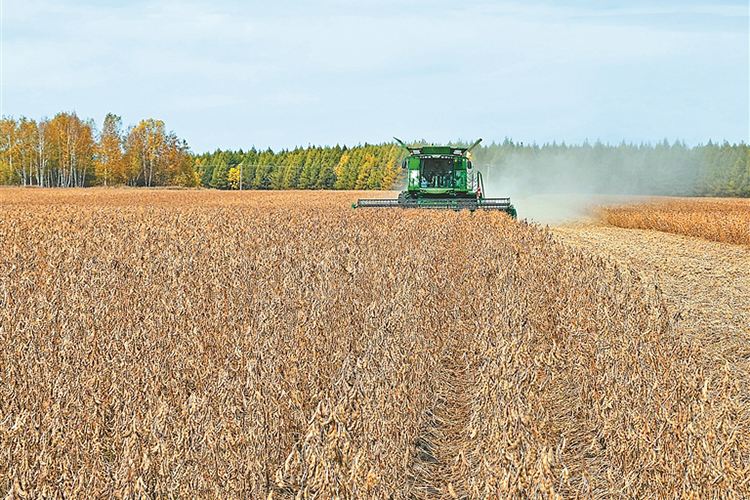 大豆收獲現(xiàn)場(chǎng)。張宏 郝愛(ài)琦攝
