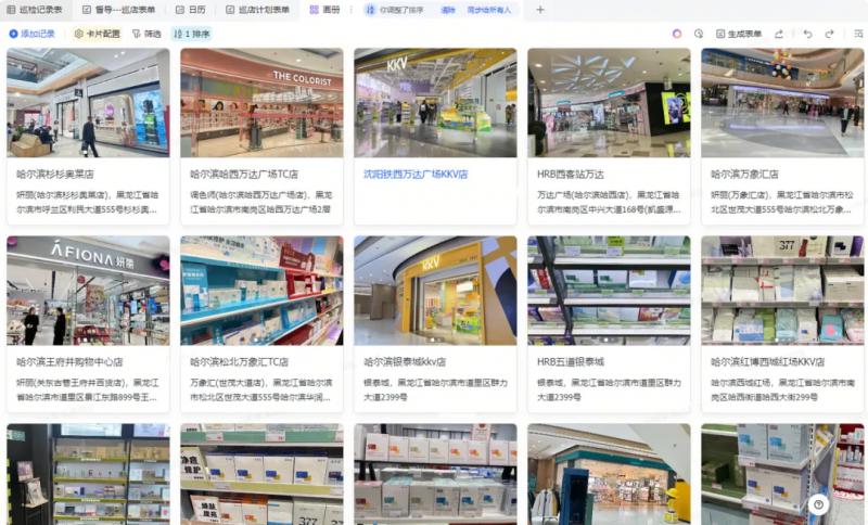 線下巡店工作能最大程度保障各終端貨品銷售質(zhì)量。過去,由于巡店工作涉及外出出差,巡店照片數(shù)據(jù)手機(jī)端無法操作整理匯總,影響問題處理時效且增加無用工作量?,F(xiàn)在敷爾佳運用飛書表單移動端操作,隨時上傳巡店結(jié)果及照片,表格儀表盤視角可以查看數(shù)據(jù)并進(jìn)行一段時間內(nèi)的環(huán)比、同比分析,基于數(shù)據(jù)分析做任務(wù)下達(dá),一次巡檢從發(fā)現(xiàn)問題到整改問題的全流程都能包攬,對于每位巡檢員來說,每天至少節(jié)省2.5小時數(shù)據(jù)統(tǒng)計時間,同時更清晰的了解每個督導(dǎo)的外出工作情況 。此外,查貨溯源沒有系統(tǒng)的數(shù)據(jù)存檔,多個渠道數(shù)據(jù)無法同步,無數(shù)個sheet篩選查詢數(shù)據(jù),容易出錯?,F(xiàn)在,運用多維表格協(xié)同操作,多個維度查看所需數(shù)據(jù),所有查貨情況能被沉淀和實時查看。